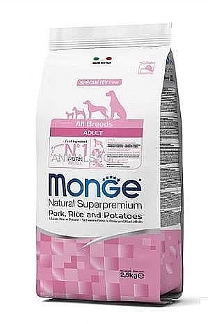 מונג' - מזון יבש לכלבים בוגרים מגזע זעיר - חזיר עם אורז ותפוחי אדמה - 2.5 ק"ג